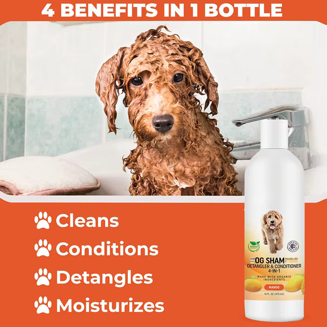 Make bath time stress-free and effective with our 4-in-1 Calming Dog Shampoo — specially designed to clean, condition, detangle, and moisturize in one easy step. Crafted with a pet-friendly formula and soothing scents, it keeps your dog’s coat healthy and leaves them smelling fresh.