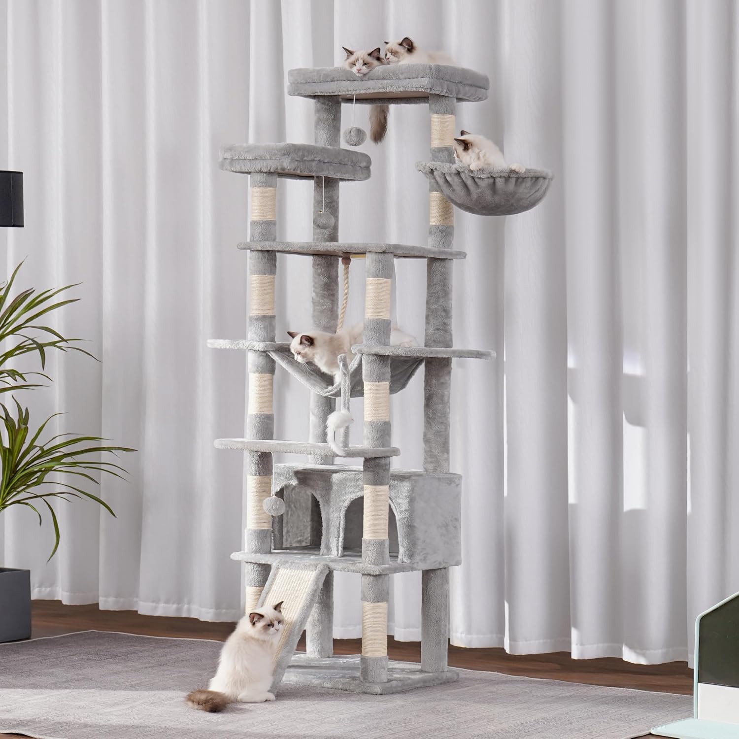 Give your cats the ultimate playground with our Tall Multi-Level Cat Tree – 78-Inch Indoor Cat Tower. Designed for multiple cats, this extra-tall tower features plush perches, roomy condos, large caves, a scratching board, and multiple climbing levels to keep your feline friends entertained, active, and comfortable all day long.