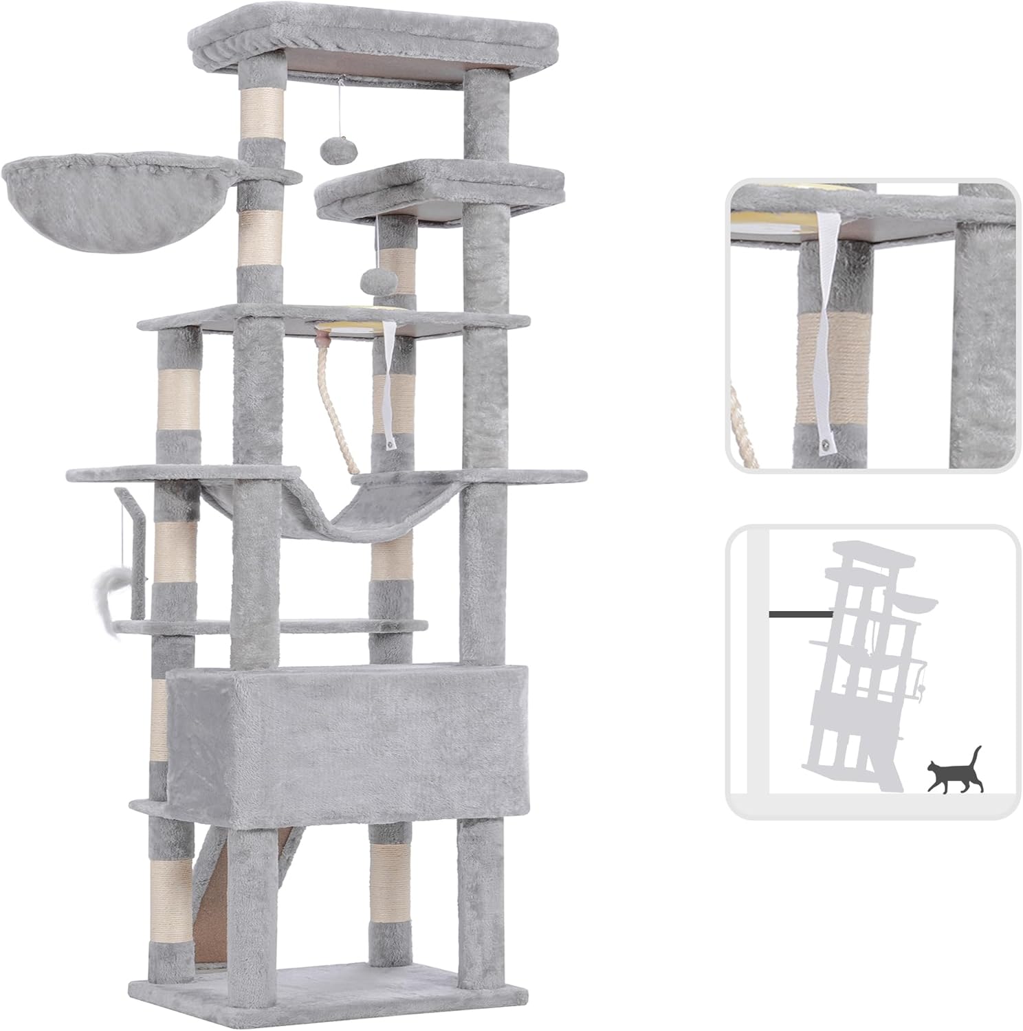 The sturdy construction ensures stability for playful jumps and climbs, while the soft plush covering offers a cozy resting spot after hours of fun. With built-in scratching surfaces, it helps protect your furniture while satisfying your cat’s natural instincts.
